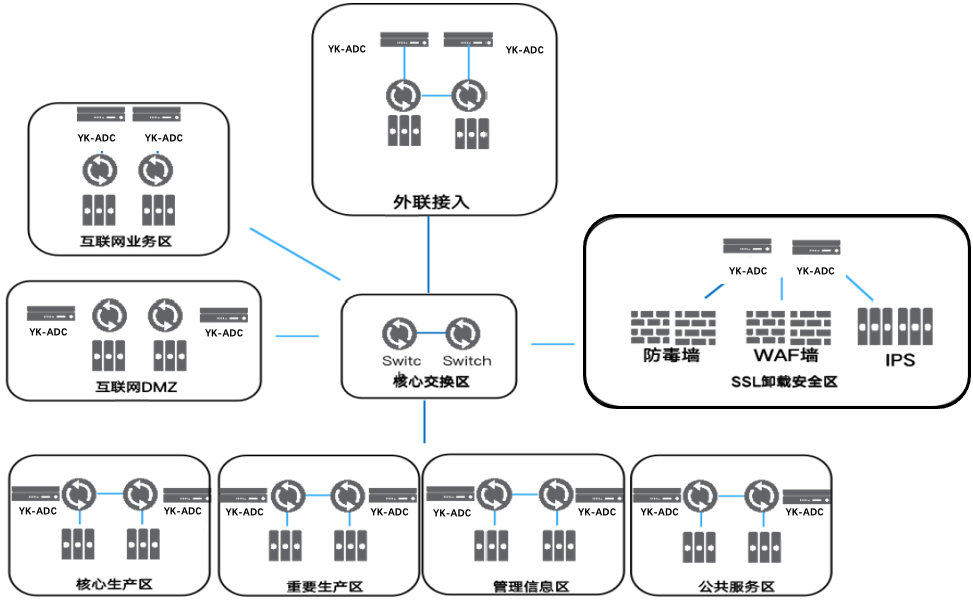 2、網(wǎng)銀接入LLB+GSLB結(jié)合,完美解決進(jìn)站出站流量多鏈路負(fù)載、雙中心智能調(diào)度,智能聚合多條運營商鏈路,整合雙中心應(yīng)用系統(tǒng)資源